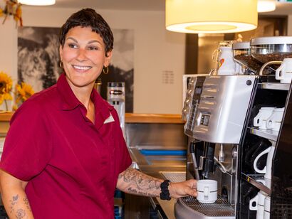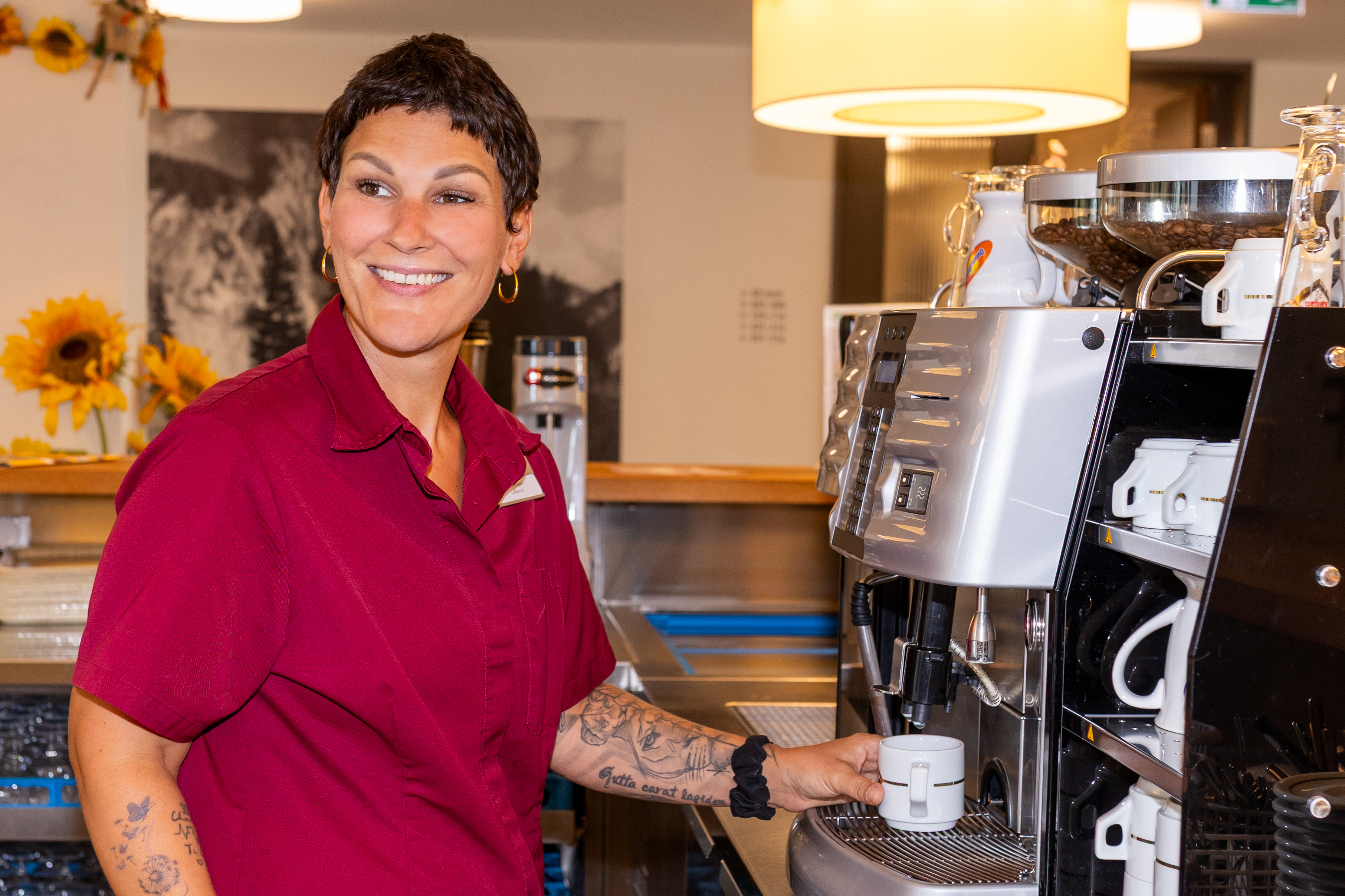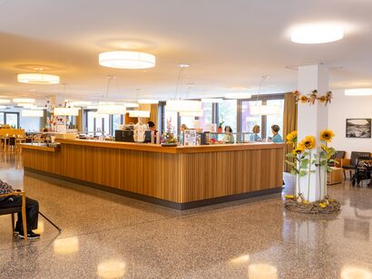 Die Cafeteria mit ihrem gemütlichen Sitzbereich ist ein beliebter Treffpunkt für Jung und Alt. Wir freuen uns über den Besuch von Bewohnerinnen und Bewohnern, Angehörigen, Freunden und Mitarbeitenden.